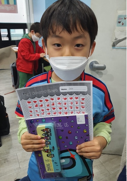 Phonics Beginner class - Leo collected all the stamps from doing his homework, participating in class, and classwork. He received a prize for his efforts. Congratulations and keep up the good work!
