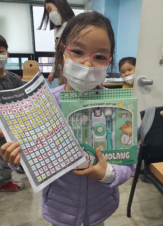 Phonics Beginner - Yuji (양유지) received a prize for completing the stamp collection for doing all her homework, classwork, and participating during class. Keep it up!