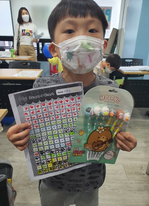 Phonics Beginner - Kenny (임건호) did a wonderful job in finishing the stamp sheet and got a prize for his efforts. Congratulations!