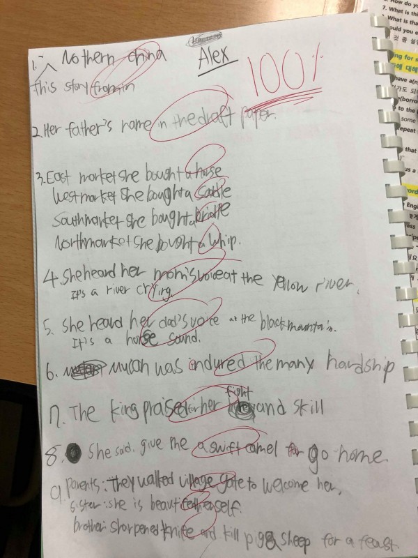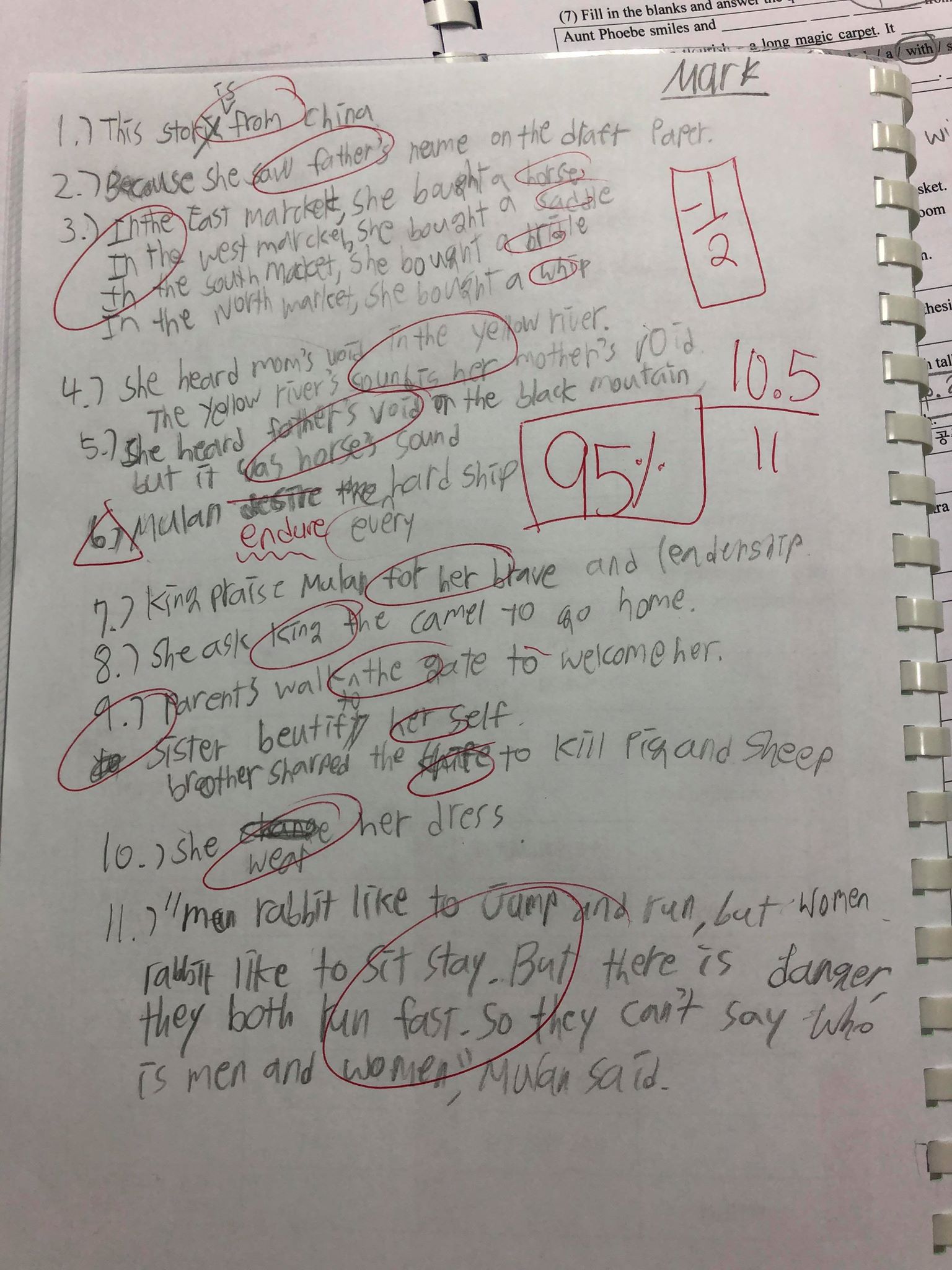 On the "Mulan" Reading Comprehension Test, Mark and Alex both got excellent marks. They did extremely well. Keep up the good work!