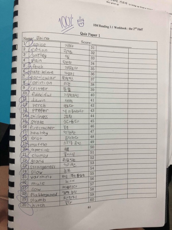 Jaina got 100% on her vocabulary test. Good job Jaina!