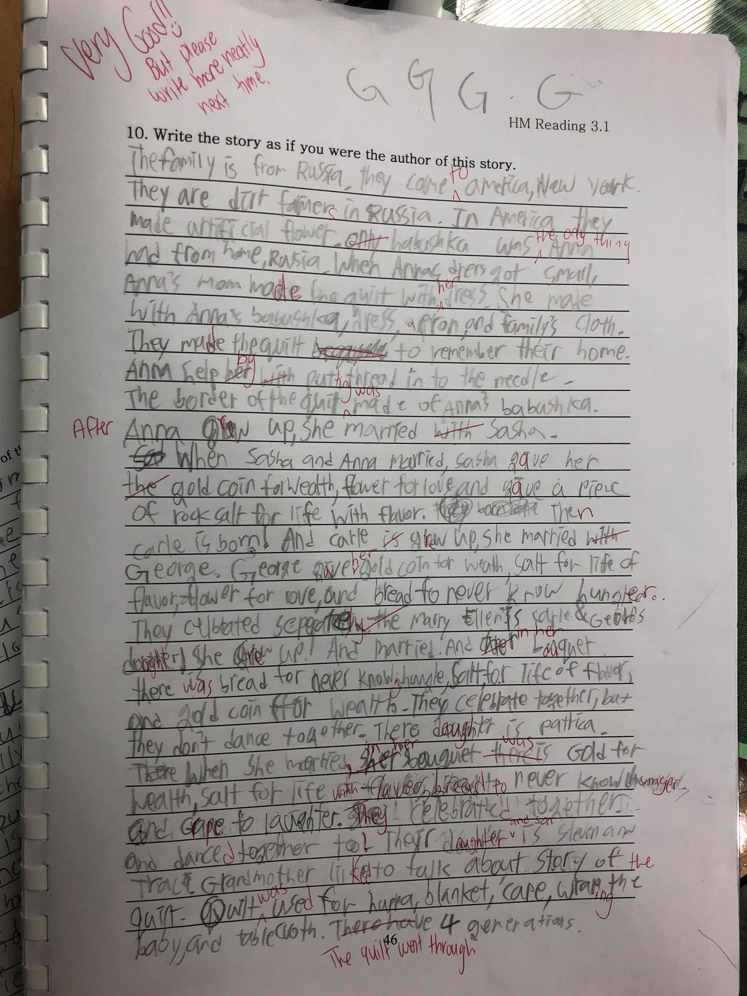Alex and Mark did a great job in summarizing the story, "The Keeping Quilt". Although there are a few grammar mistakes, the overall flow of the story is constructed very well.