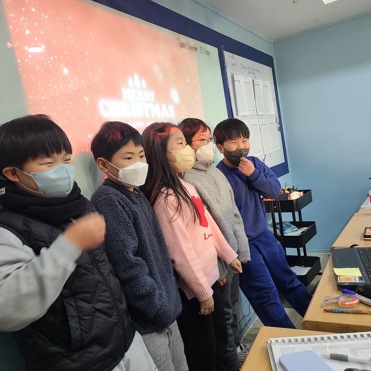 그룹으로 나뉘어서 Song Festival을 진행했습니다. 잘한 반은 선물을 받았습니다. 1.4반 & 1.5반