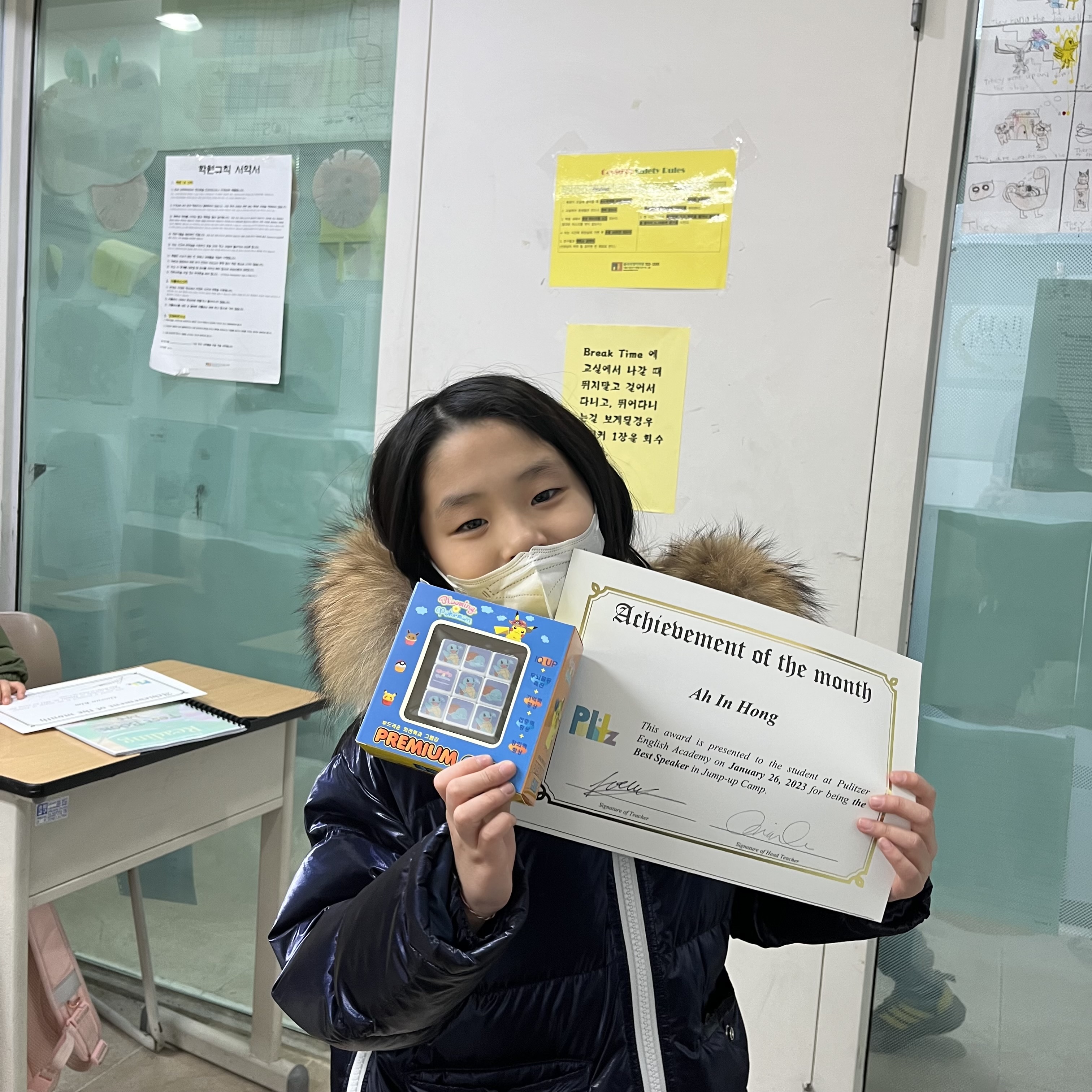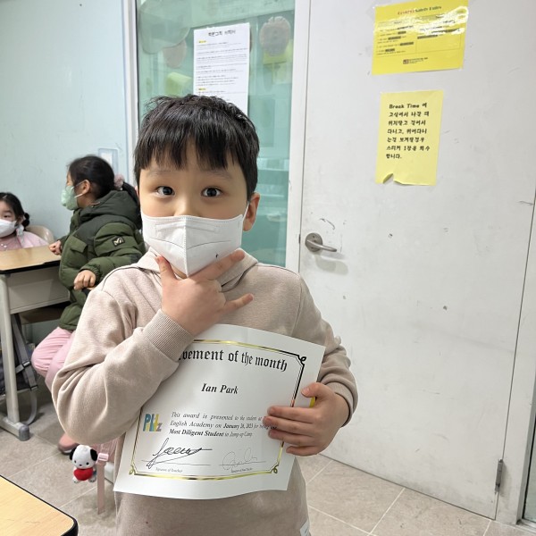 Jump up 1.4 achievements - Hayle (김고운), Jenny (송시아), Ayin (홍아인), Ian (박이안) all received certificates of achievement for completing winter intensives jump up program along with a prize. Congratulations!