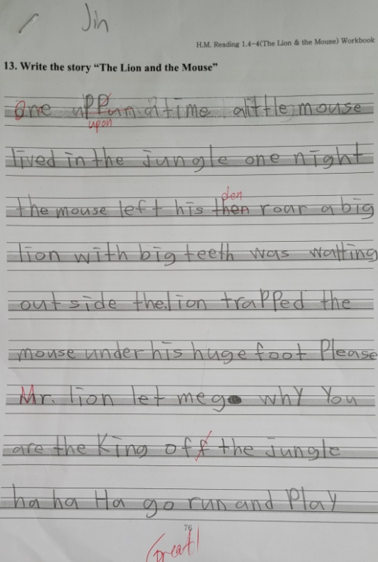 Jump up A 1.4 - 송지호 (Jin) did an awesome job in writing the story for "Lion and the Mouse". Keep up the excellent work!