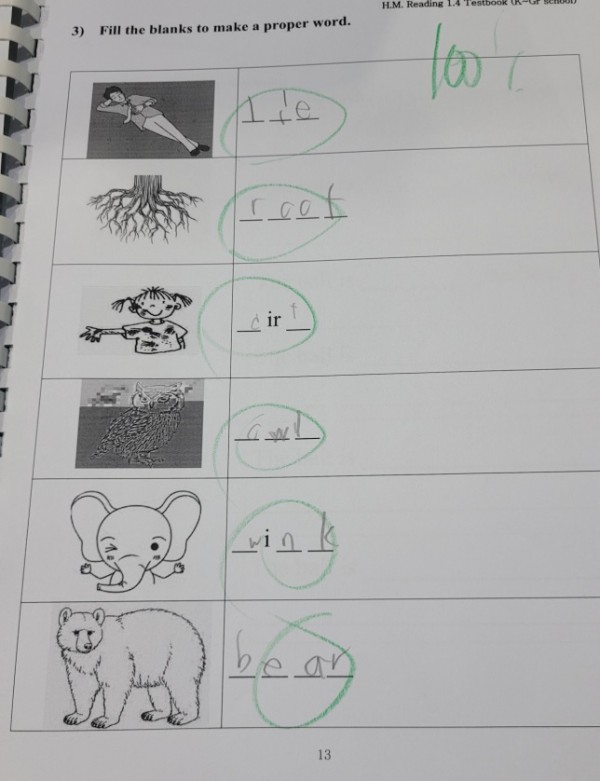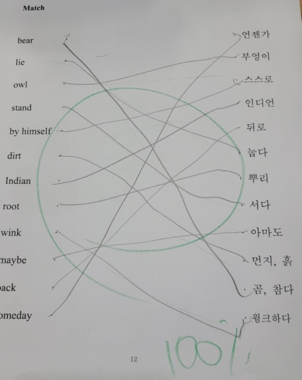 E1.4B - 김윤호 (Yoonho), 박정우 (Jaden), 이치헌 (Ben), 이우형 (WH), 원지오 (Jio), 원준오 (Juno) all did very well on 3 tests which were matching, fill in blanks, and vocabulary related to the story, "Johnny Appleseed". I couldn't attach all the photos so here is a sample of a couple of them. They are all doing a wonderful job and I'm very proud of them.