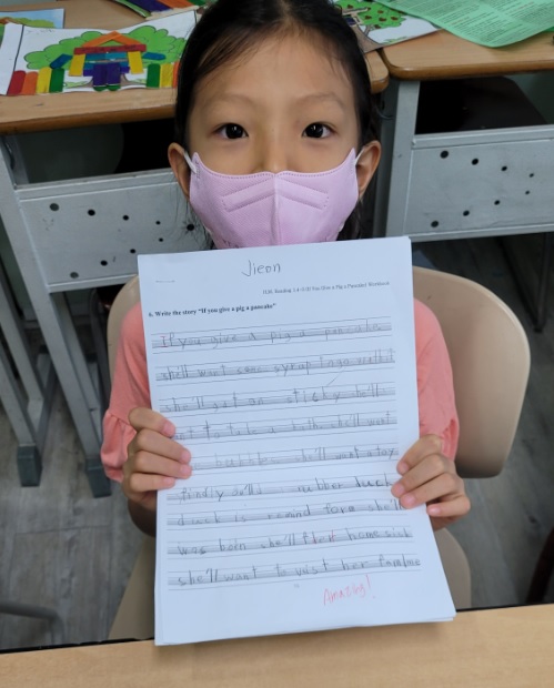 Jump up A 1.4 - 최재욱 (Jaewook) and 박지언 (Jieon) did an amazing job in writing the story for "If You Give a Pig a Pancake". Nice work!