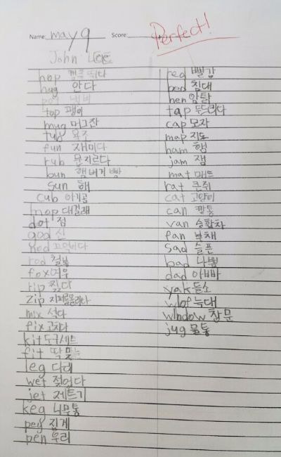 이기윤 학생이 오늘 Phonics 단어 시험에서 만점을 받았습니다.