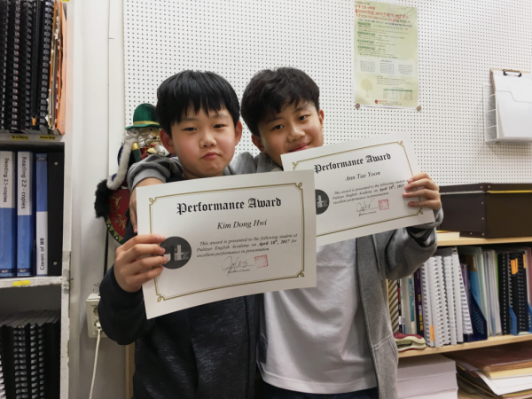 두 학생이 Reading Presentation을 훌륭하게 해내어 상장을 받았습니다.^^