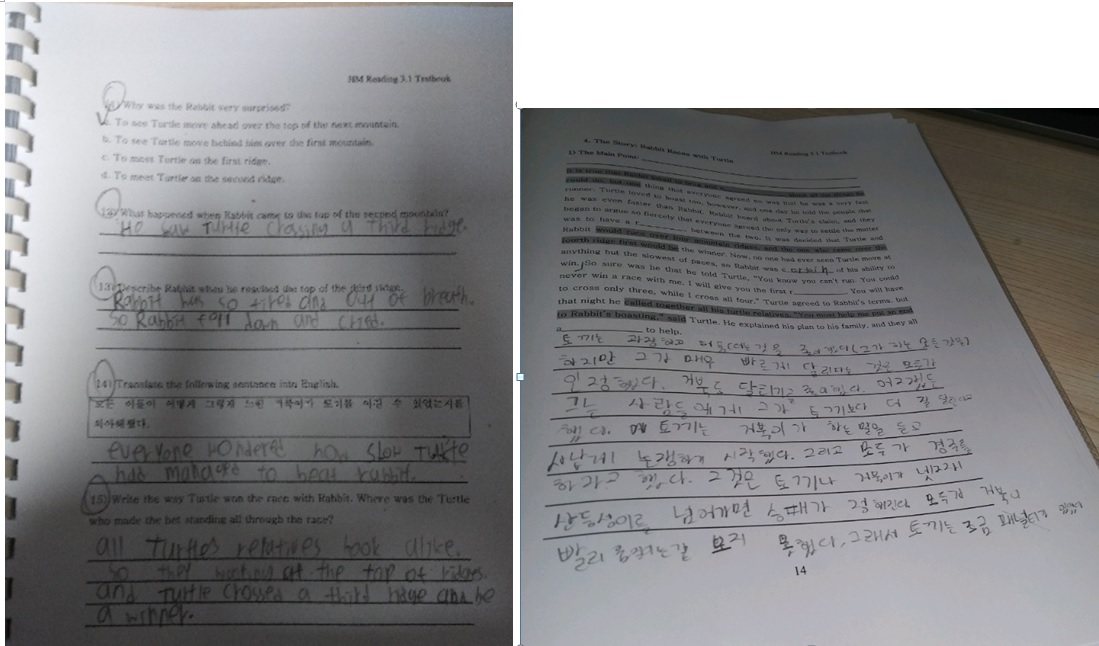 R3.1 - 홍연준 (Peyton) and 홍서준 (Evan) did a wonderful job on the translation test and comprehension test for the story, 'Rabbit Races with Turtle'.