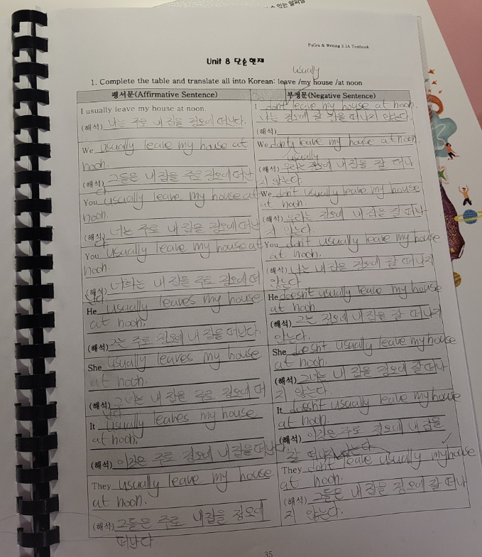 E3.1B 이혜인 (Haylynn) 이서원 (Lydia) did a great job and got a perfect score on grammar test Unit 8 Pugra about Affirmative, Negative, and Interrogative sentences. Keep up the good work!