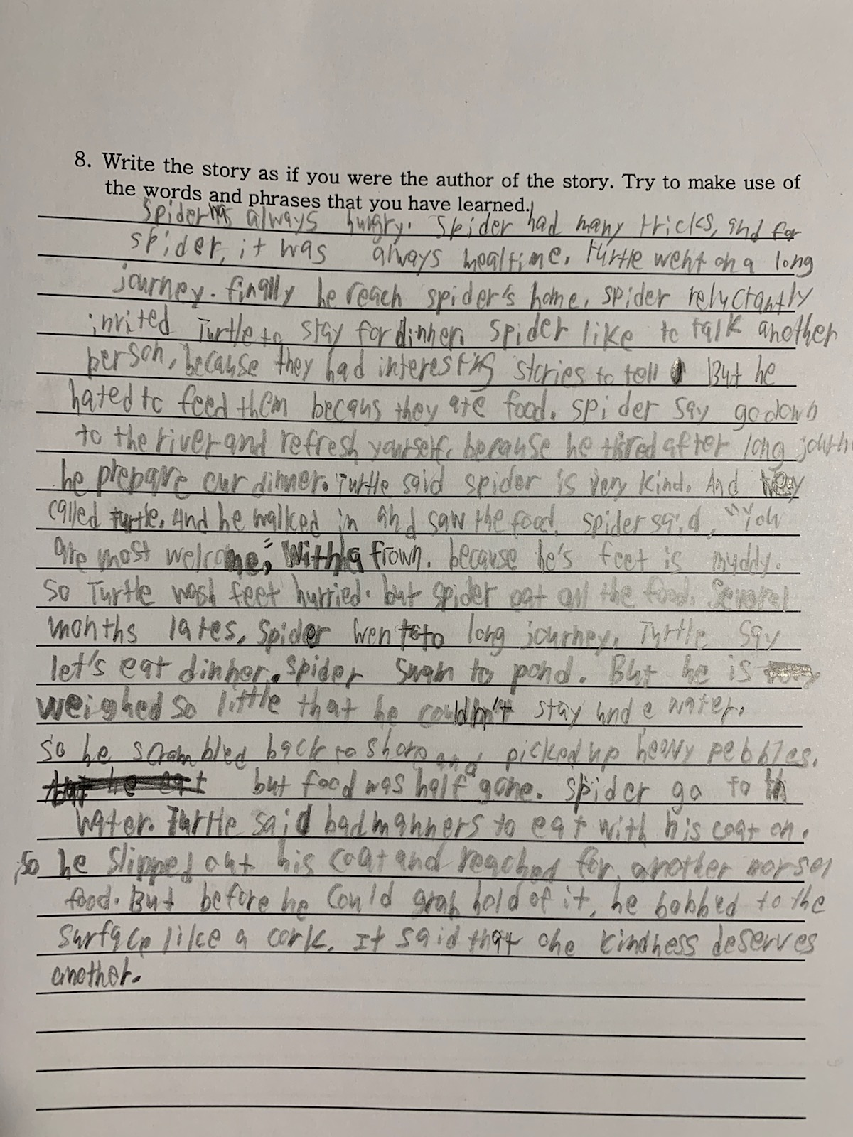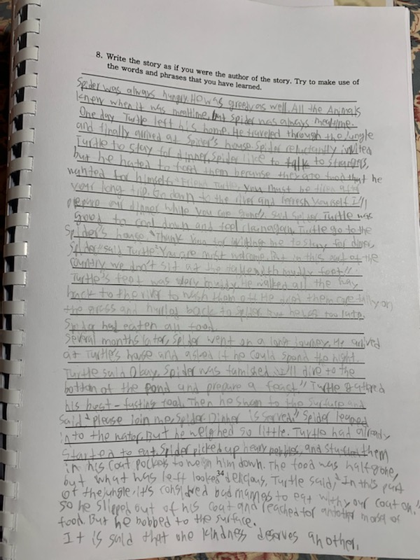 R3.1 - Isaac (김인) and Charles(김후) both wrote about the story, "Hungry Spider" from Trickster Tales and has shown so much improvement. I'm so proud of them. Keep up the good work~!
