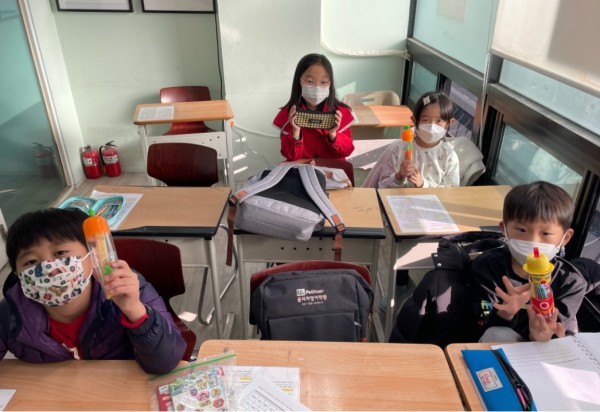 이태형 (Rex), 임건호 (Kenny), 양유지 (Yuji), 김채원 (Chaewon) finished collecting stamps and got prizes for their hard work :)