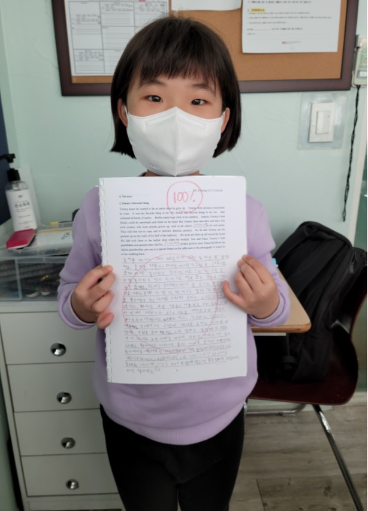 R2.2 - Elizabeth (임수안) got a perfect score on the translation test for story, "Art Lesson". She studied really hard and showed her understanding of the story. Amazing job