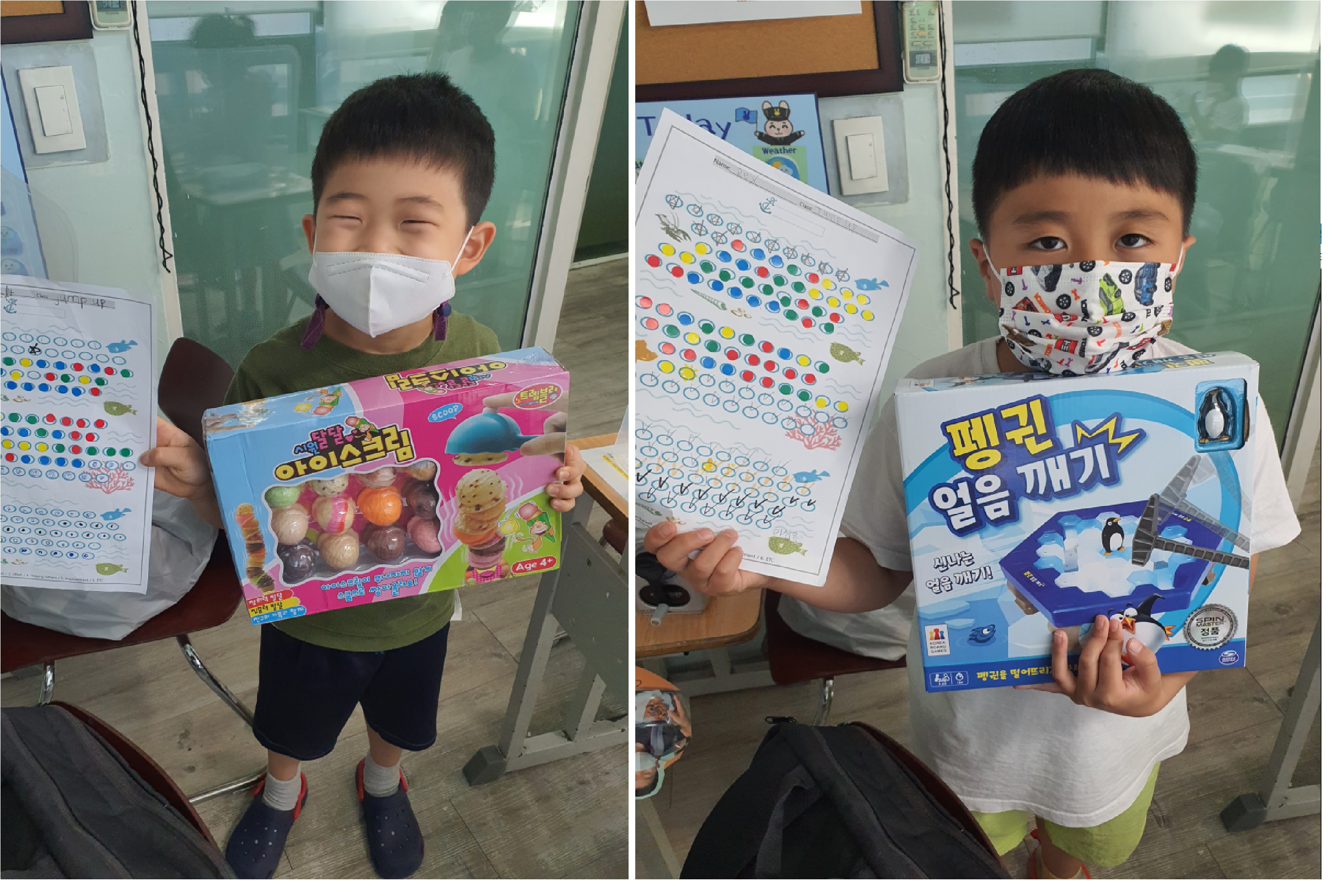 Phonics Jump up class - Yuji (양유지), Rex (이태형), JuHwan (박주환) all completed collecting their stamp sheets to get a prize. They all worked very hard by doing their homework, classwork, listening to the teacher, participating, speaking English during class, and many other things. You guys are amazing! Keep it up!