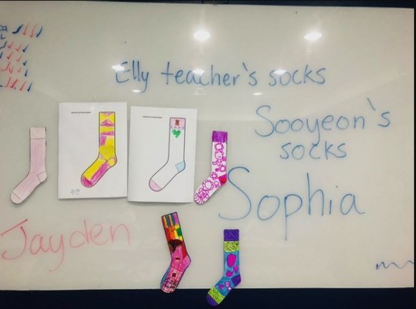Phonics beginner 1 (화목반) 수업에 열심히 참여하고 양말 만들기 열심히 해서 칭찬합니다