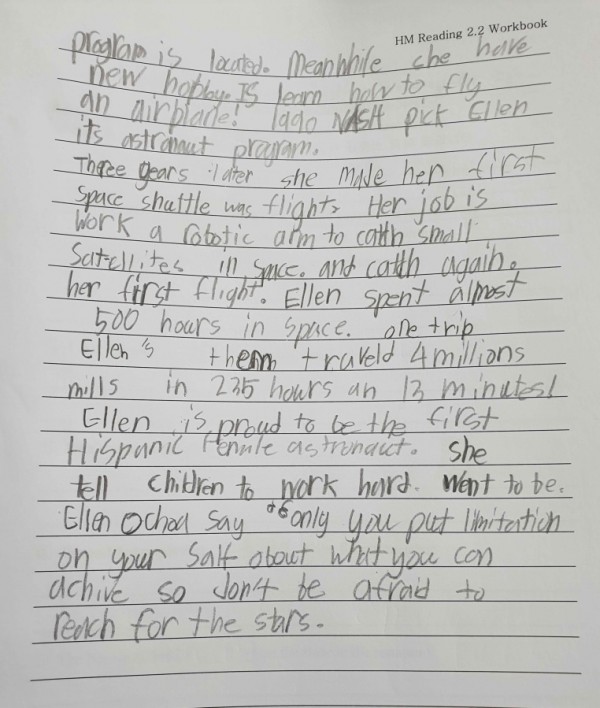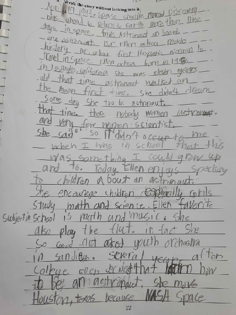 R2.2 이소율 (Sophia) wrote the summary for biography "Reach for the Stars: Ellen Ochoa story" and she did a wonderful job. Keep it up!!
