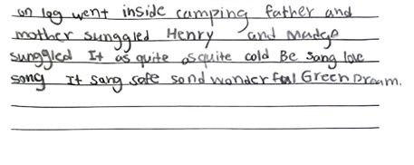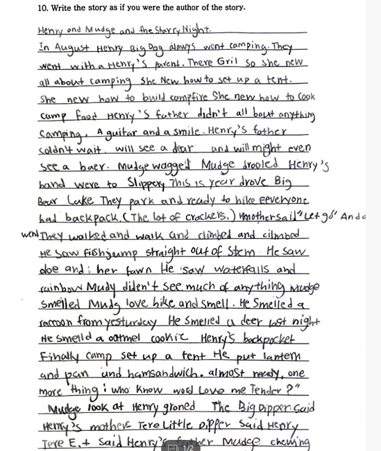 Comment: Chaeyul’s story writing about Henry and Mudge’s camping shows her effort and interest in the story. She used the learned words and expressions freely and thoroughly to express the story line. Excellent job, Chaeyul!