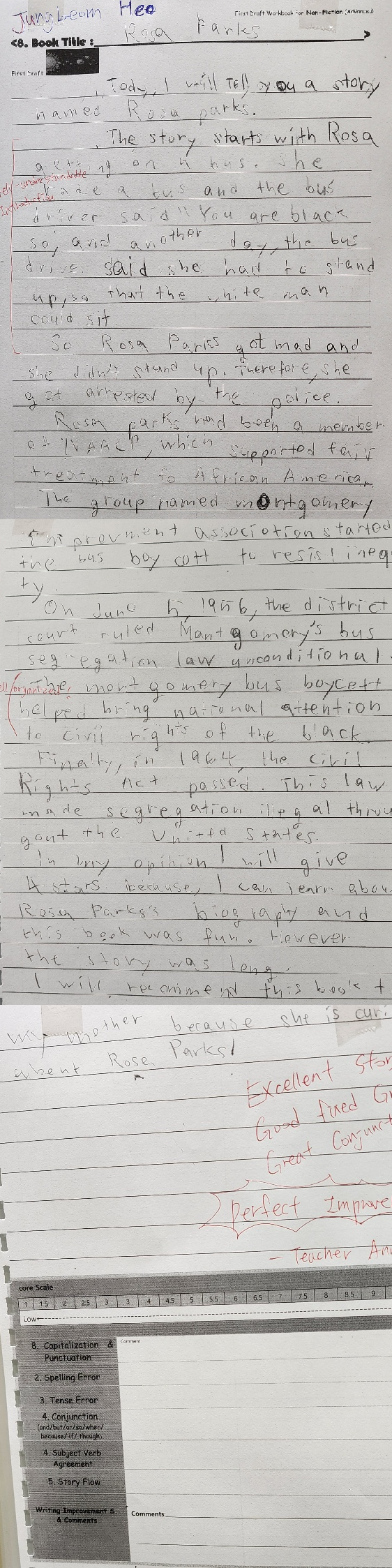 허정범 학생이 'Rosa Park' 이라는 인물에 대한 책을 읽고