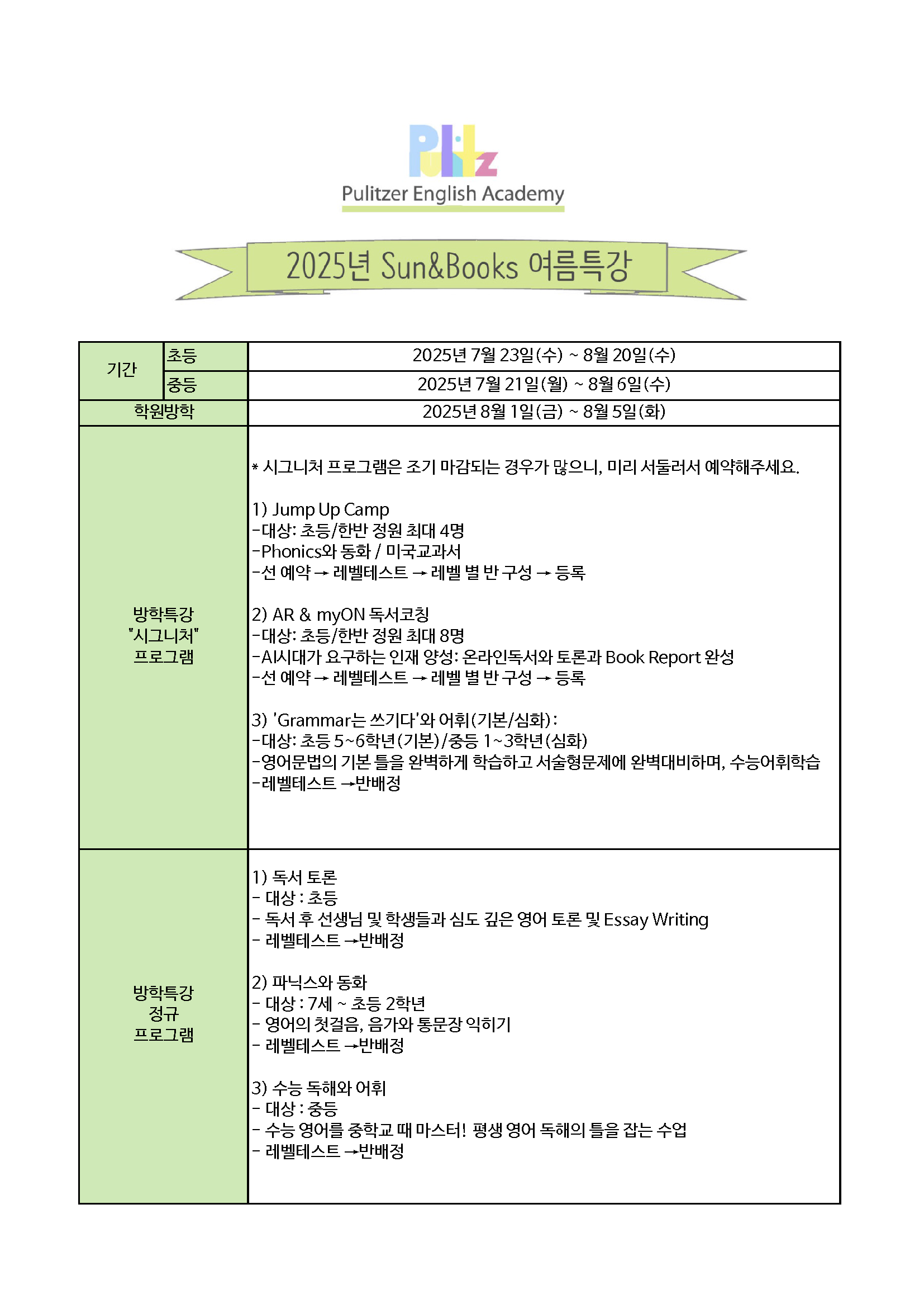 퓰리처영어학원소식
