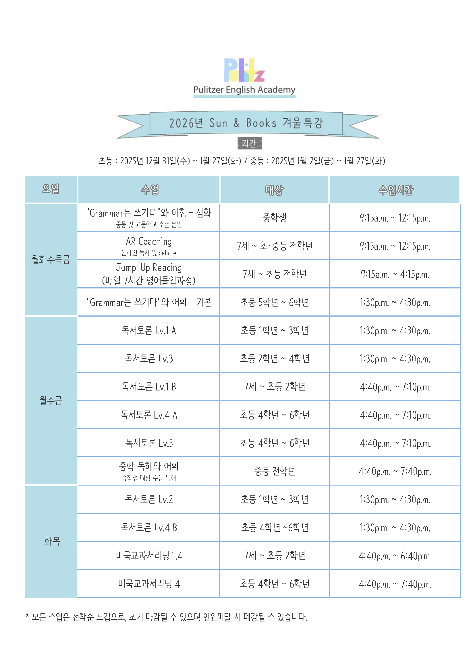 ** 수업문의) 703-3594/5 퓰리처영어학원