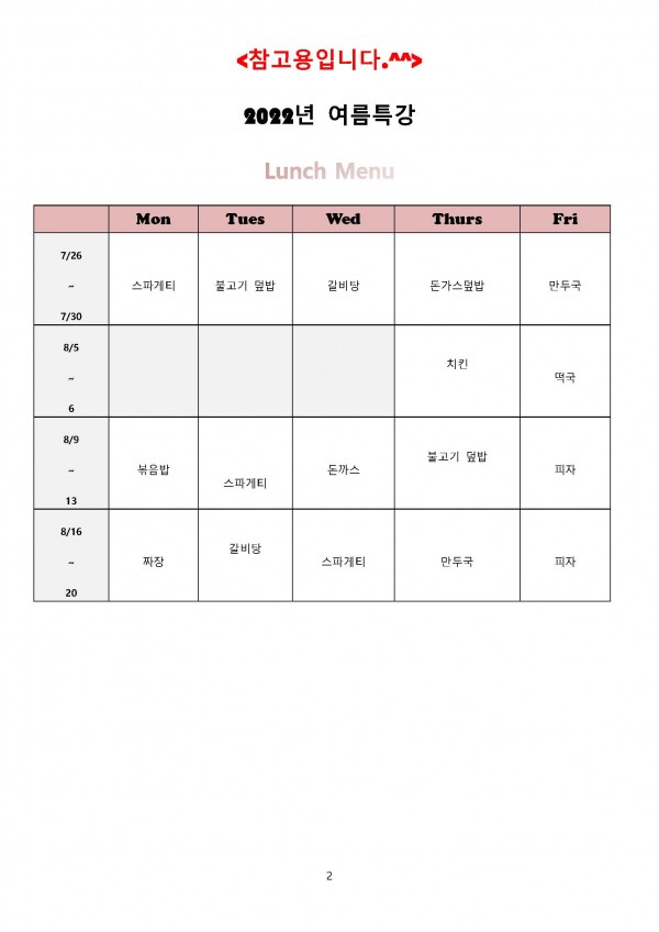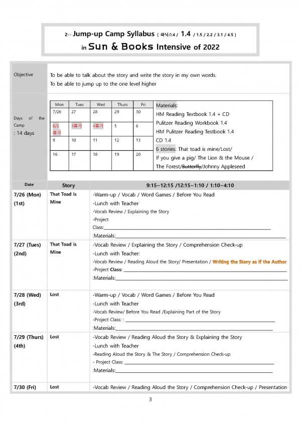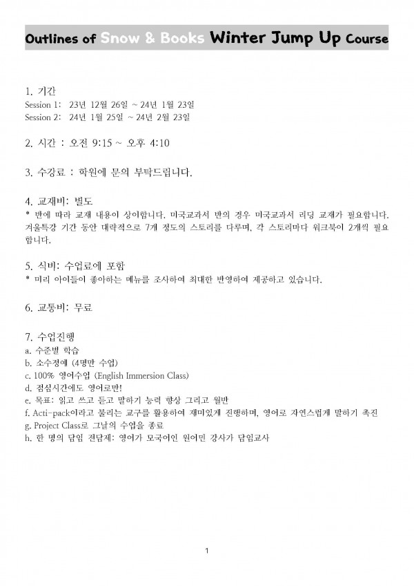 * 수업을 위해서는 레벨테스트가 필요합니다. 수업 문의 및 대기를 원하시는 분들께서는 02)703-3594/5로 연락주시기 바랍니다.