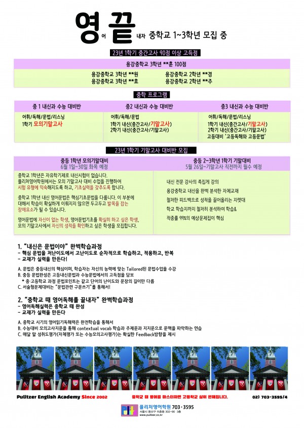 수업 상담 및 문의 : 02)703-3594/5 퓰리처영어학원