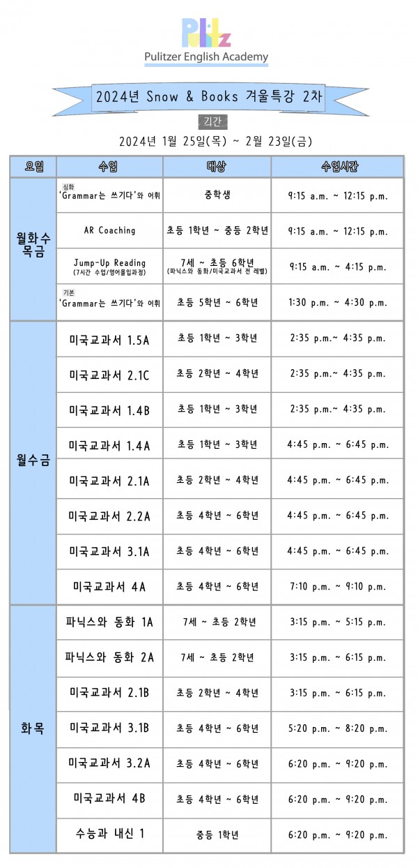 퓰리처영어학원소식