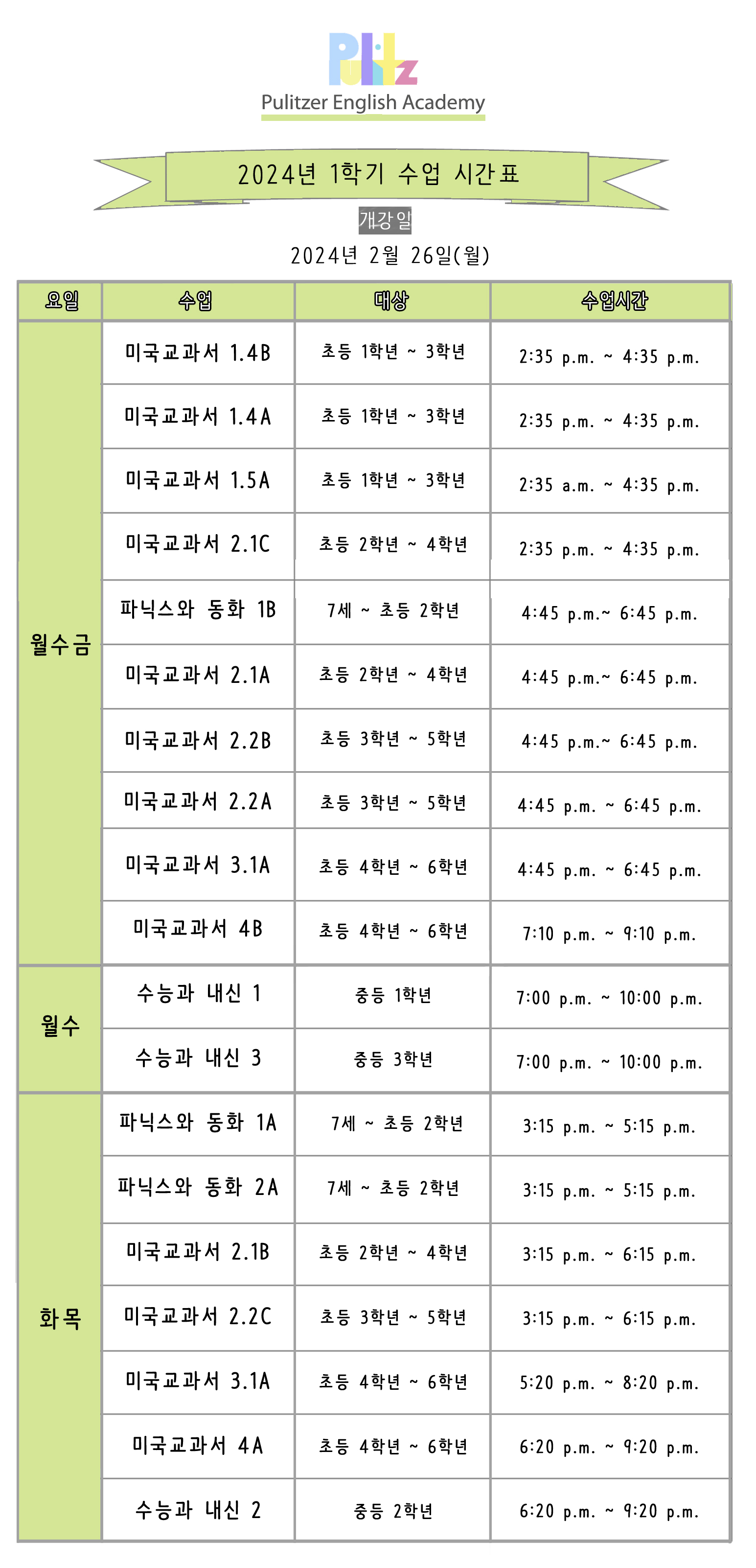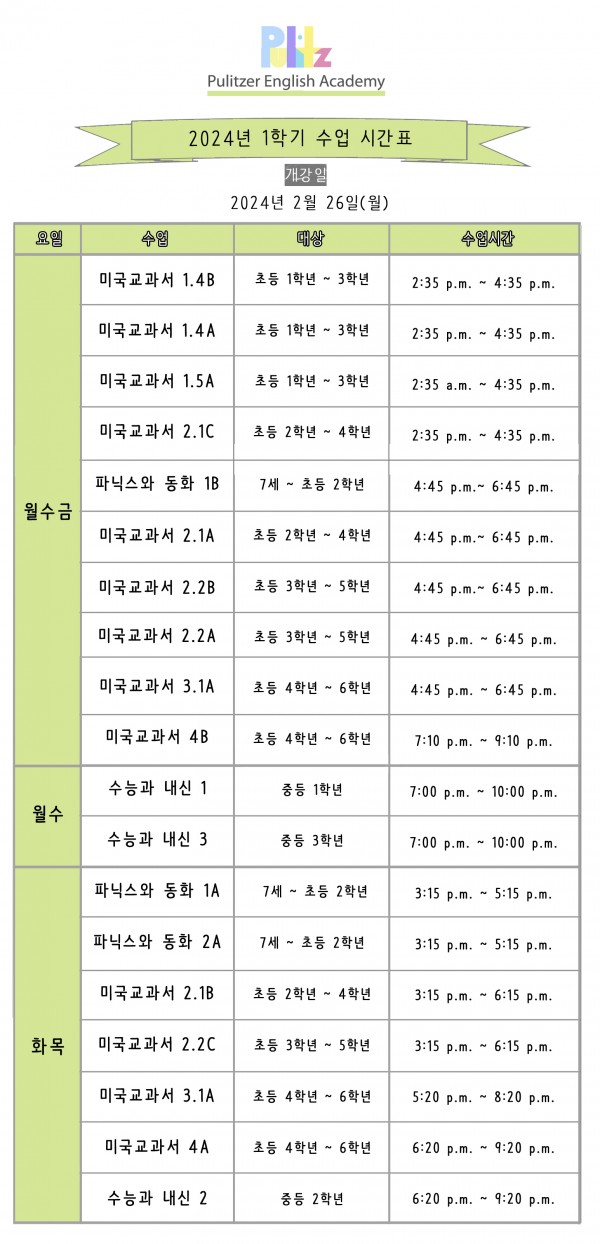 퓰리처영어학원소식