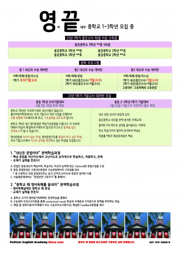2023년 5월10일-영어끝내자 중1~3 모집 (특히 1학년은 모의기말고사대비반)
