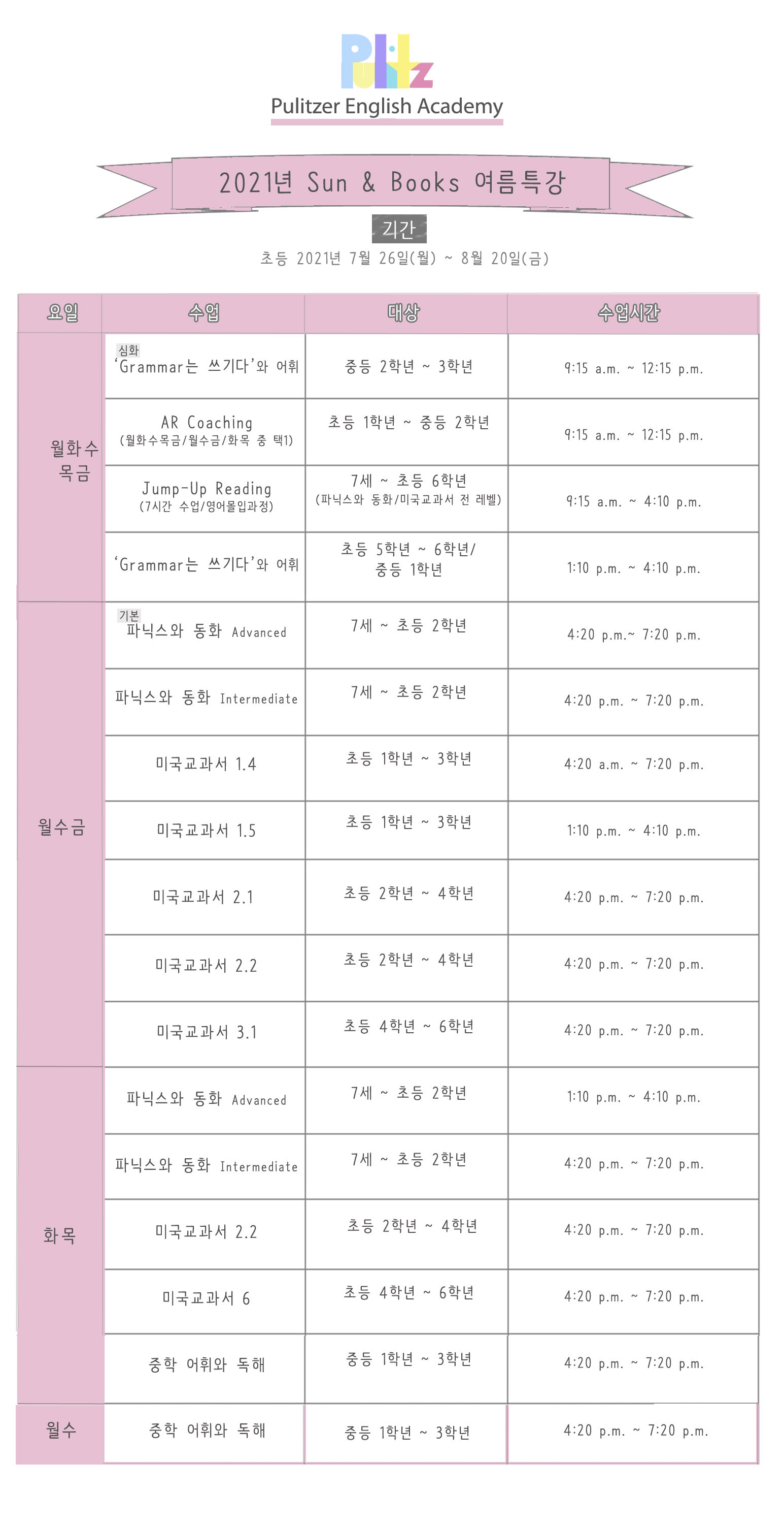 퓰리처영어학원소식