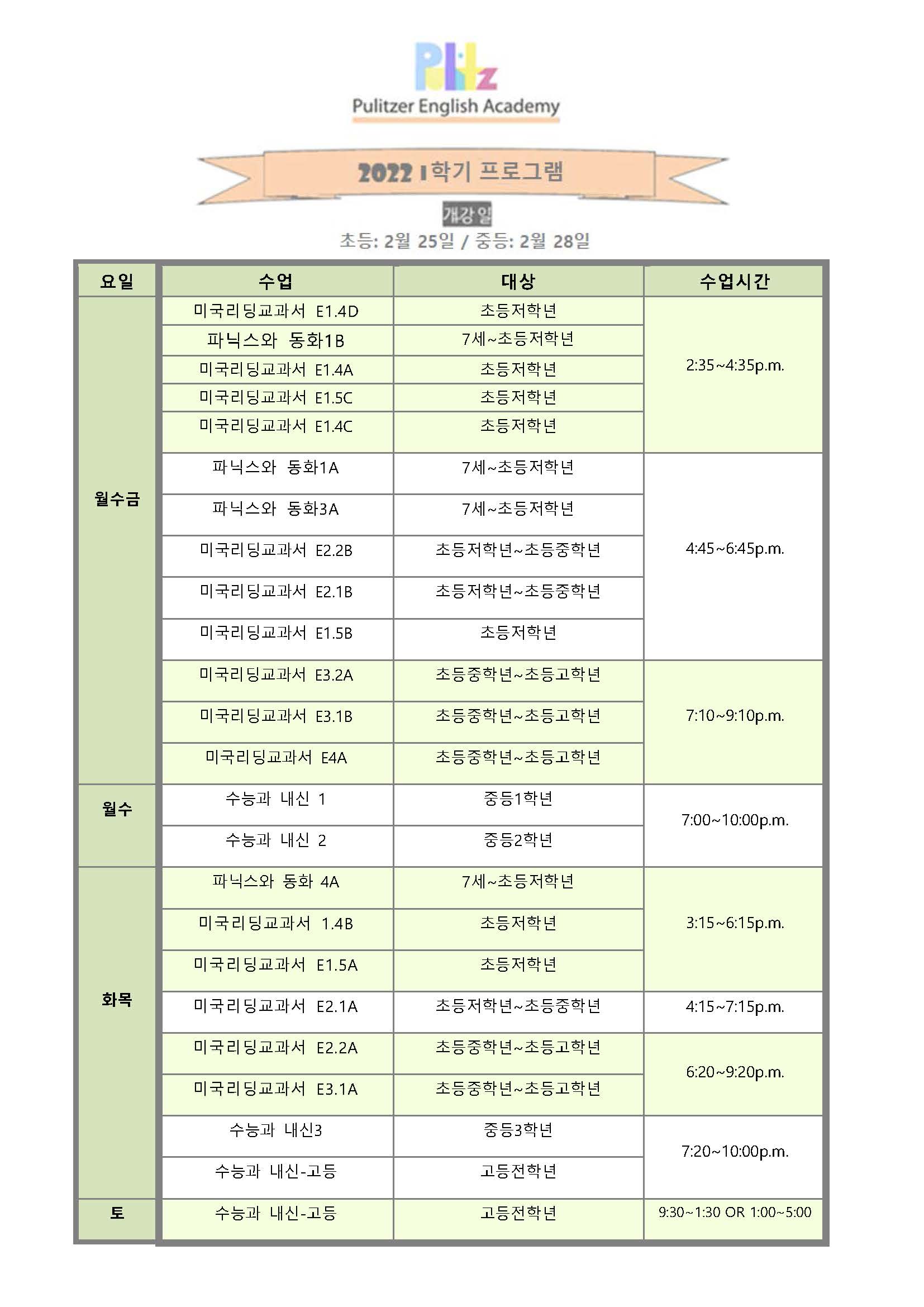퓰리처영어학원소식