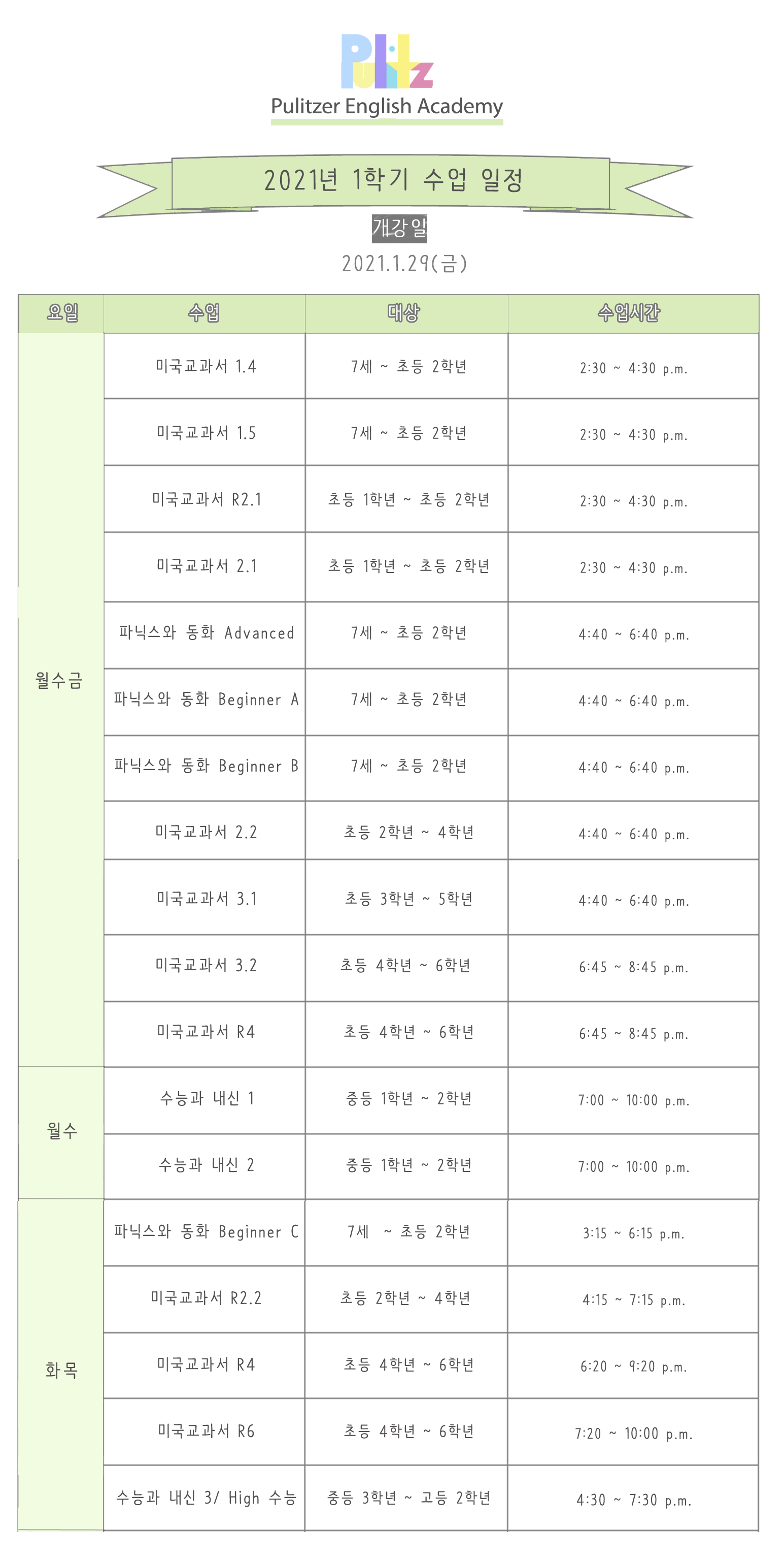퓰리처영어학원소식