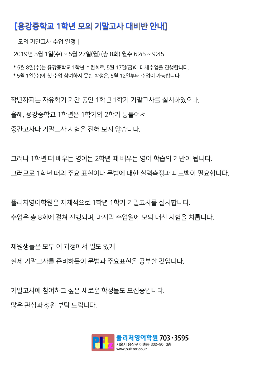 퓰리처영어학원소식
