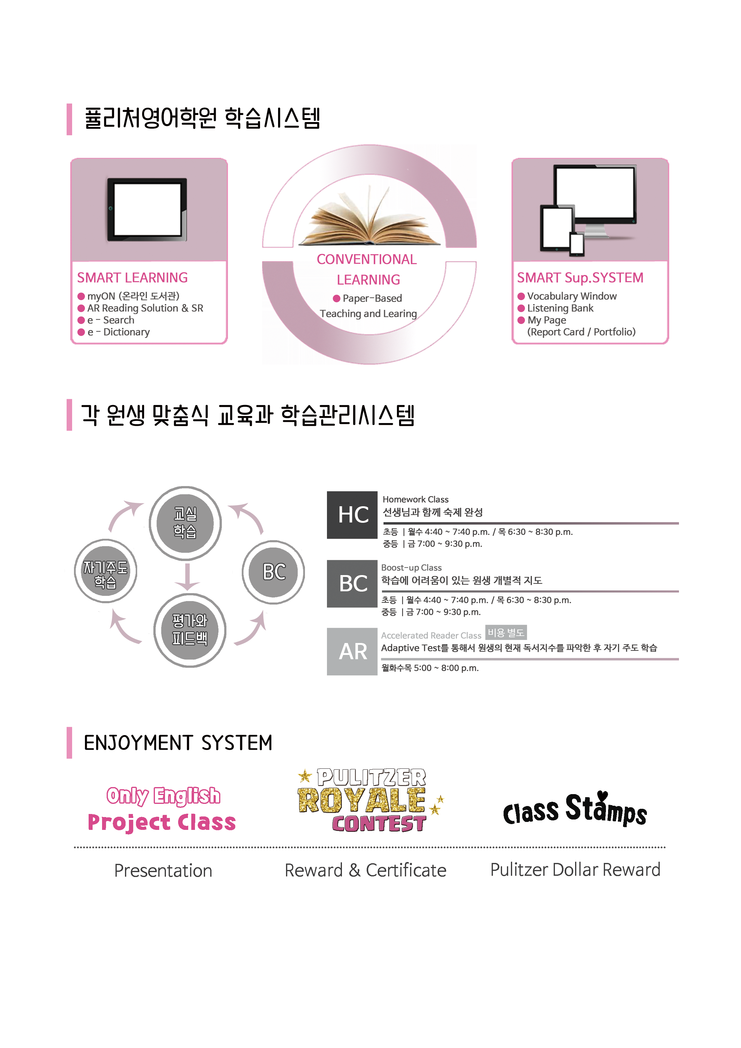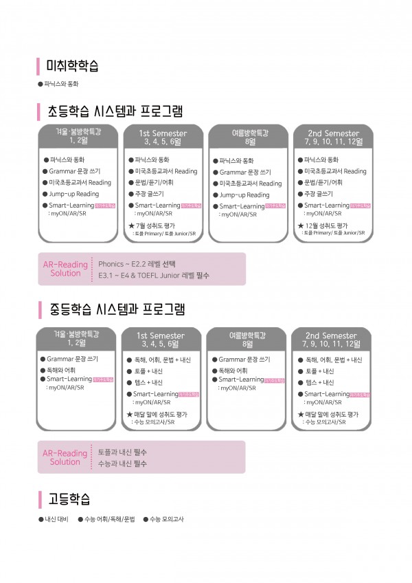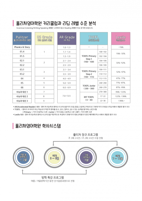 퓰리처영어학원 학습 프로그램 및 커리큘럼 안내