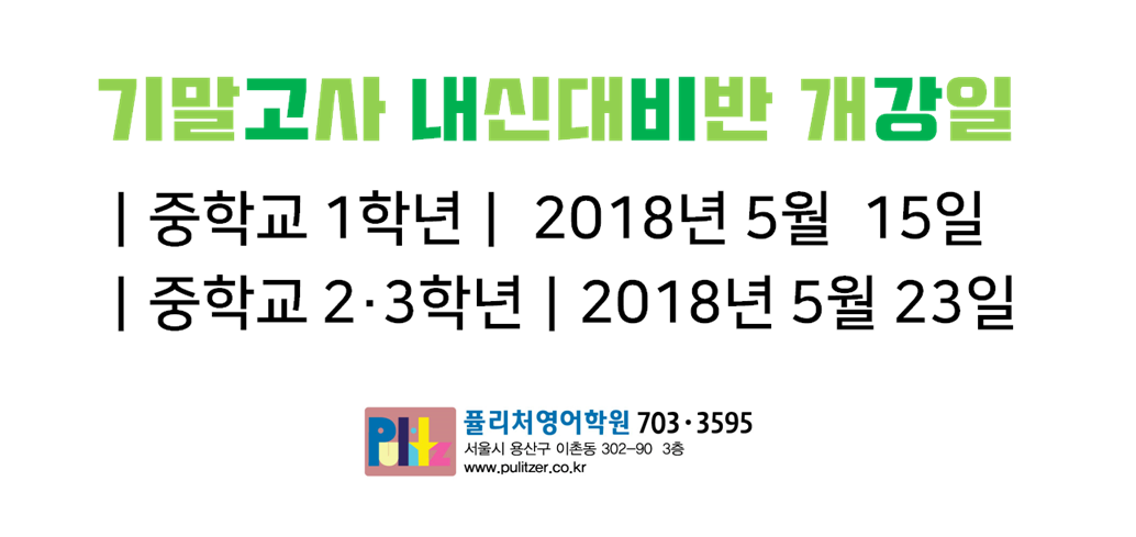 퓰리처영어학원 1학기 기말고사 내신대비반 개강 안내