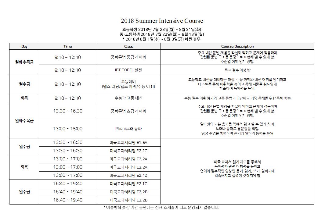 퓰리처영어학원 2018년 여름방학 특강 안내 드립니다.