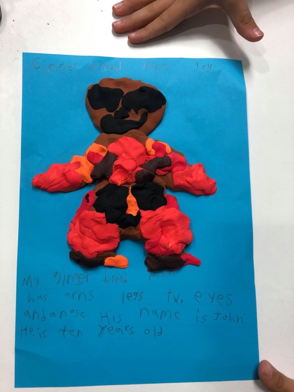 After reading "The Gingerbread Man", the students got to make their own with clay! They even gave it a name to each individual gingerbread man that they made.