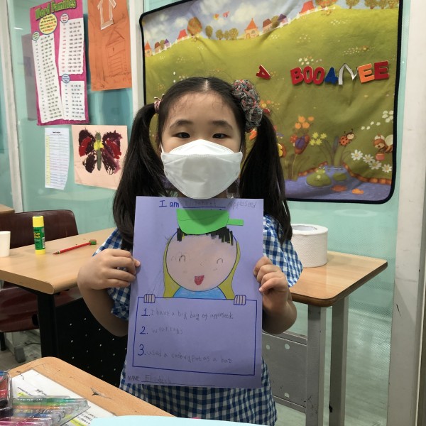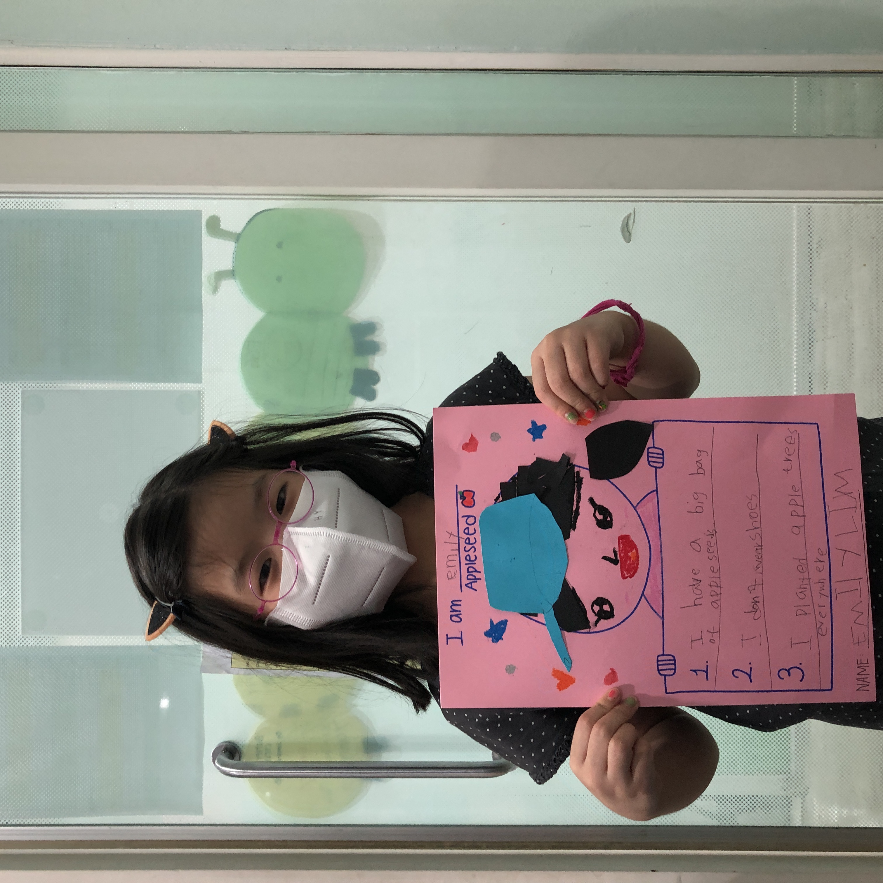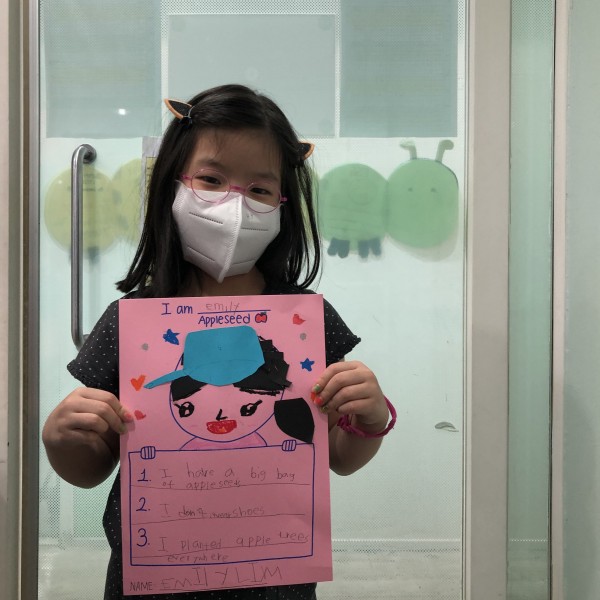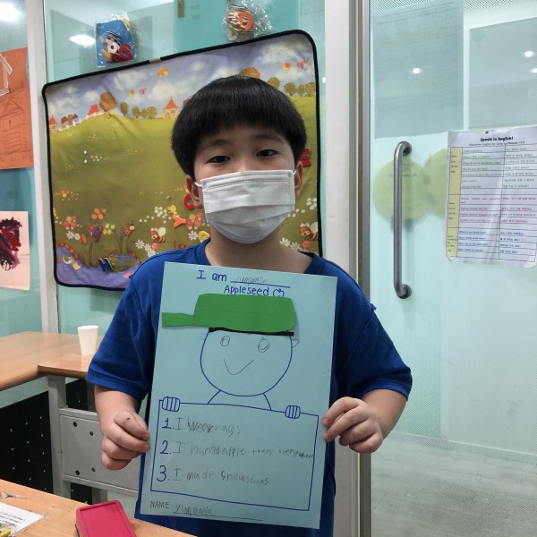 Good Afternoon! On today's project class, each student imagined being Johnny Appleseed! By drawing their own face onto the posters and selecting 3 key characteristics of Appleseed, the students took part in becoming the new Appleseed character. Besides, they drew colorful cooking pots that were used as hats in the story.