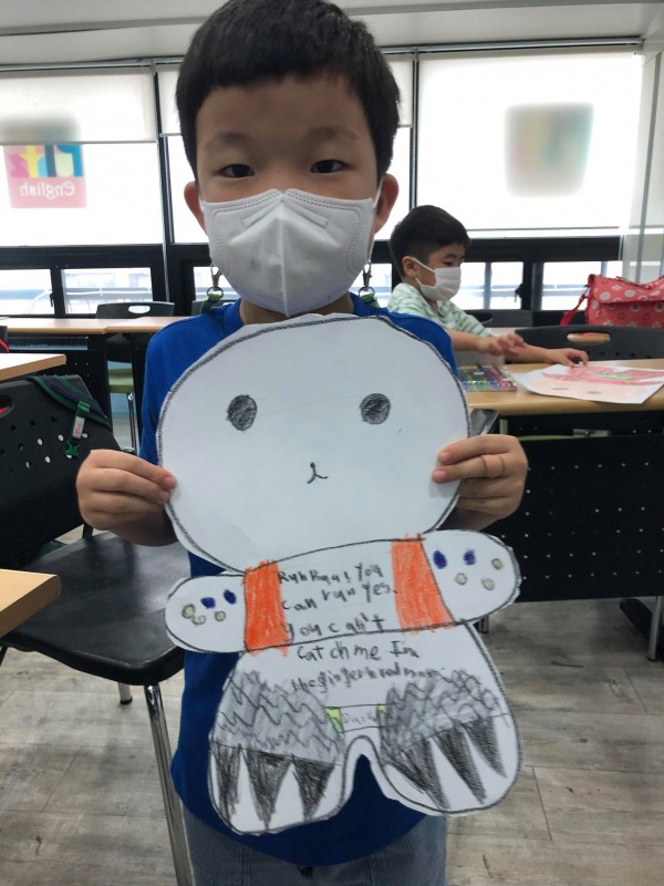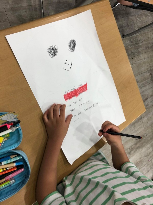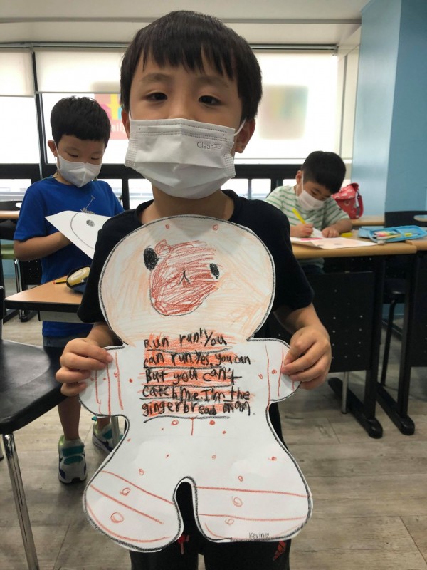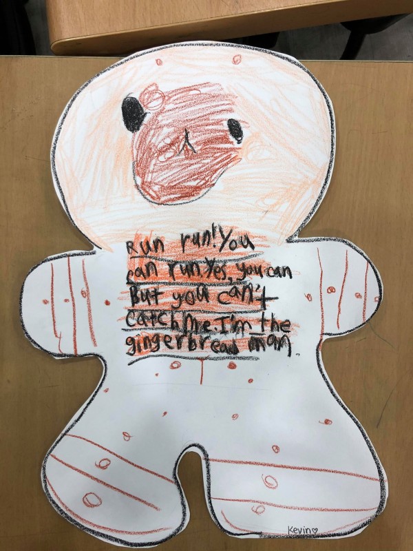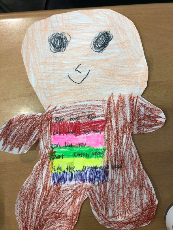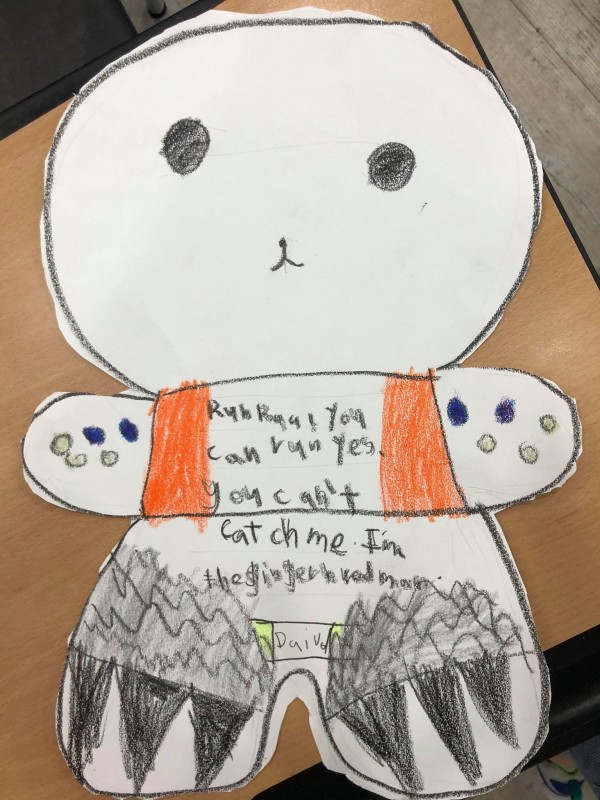 Today the students got to design their own gingerbread man. They learned the rhyme by heart so they wrote "Run, run! You can run. Yes, you can. But you can't catch me. I'm the gingerbread man".