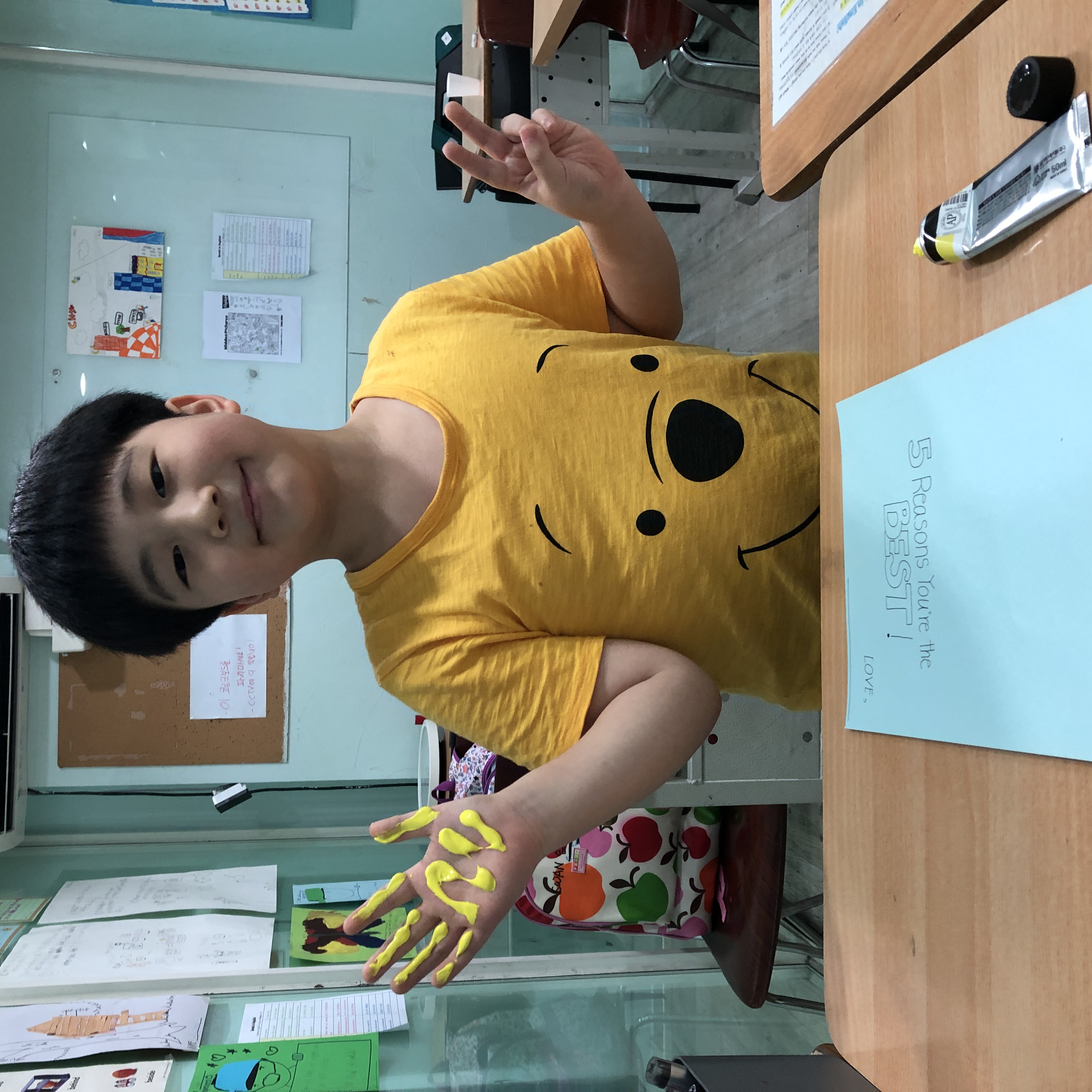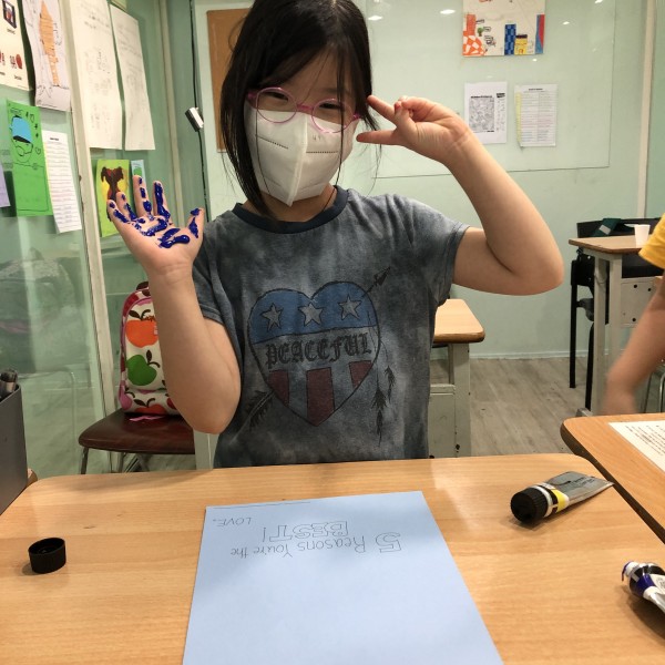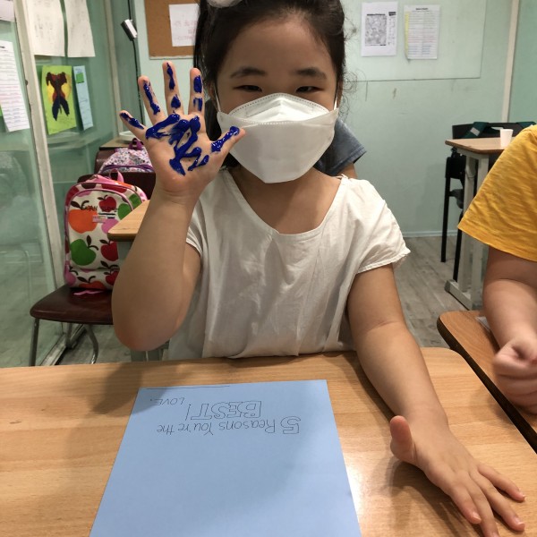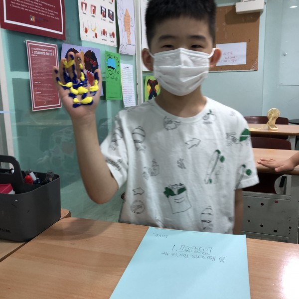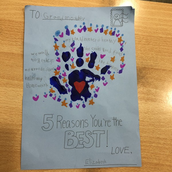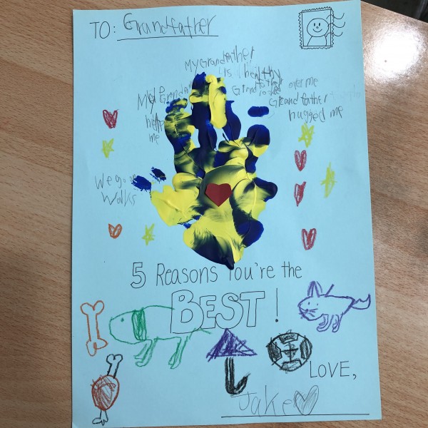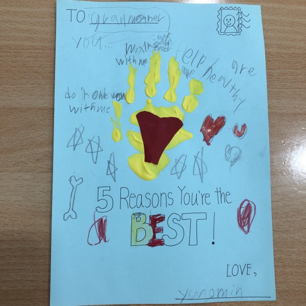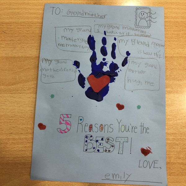 After learning "When I am Old with You", the students prepared a letter to their grandmother or grandfather. The letter consists of a colored hand print, a heart within the palm, and 5 reasons why they are thankful of their grandparents. I hope this practice could remind the students to be thankful of their grandparents and also their parents. See you tomorrow!