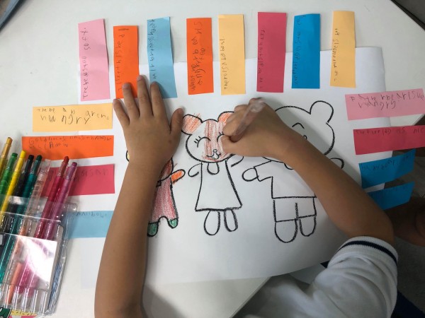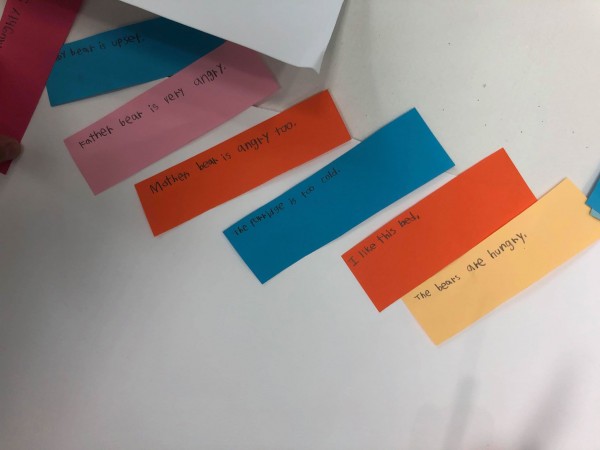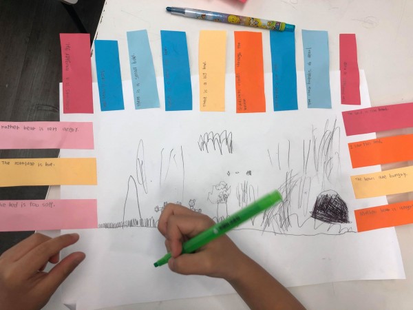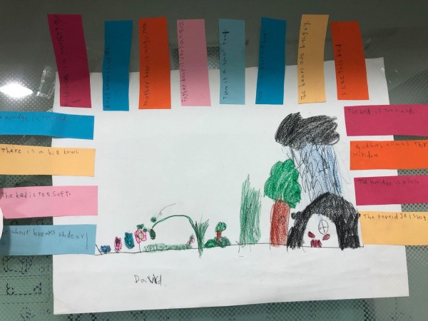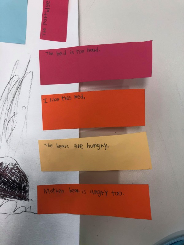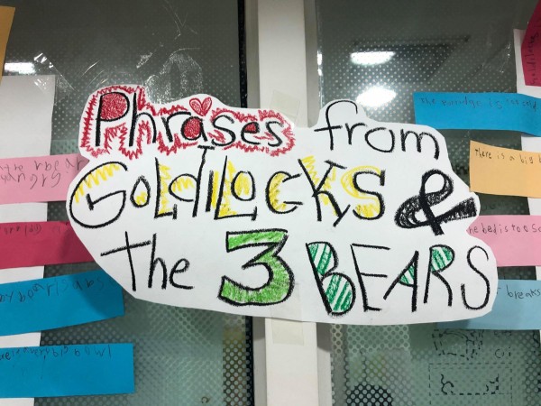 The students got to practice speaking and writing down simple phrases from the story, "Goldilocks and the Three Bears". After learning and practicing the phrases, they got to draw pictures related to the story.
