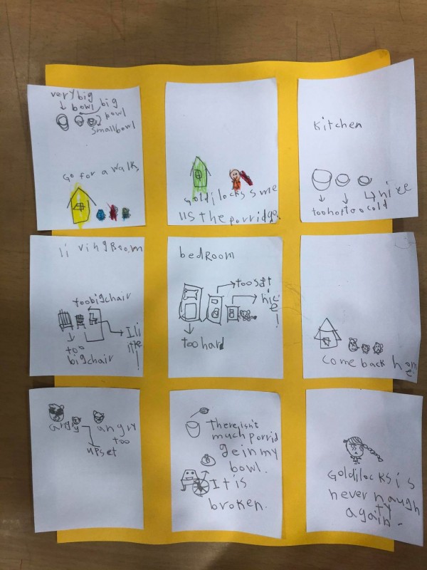 The students got to rewrite the story of "Goldilocks and the Three Bears" but in a comic book style. The students even got to practice telling the story after finishing their work!