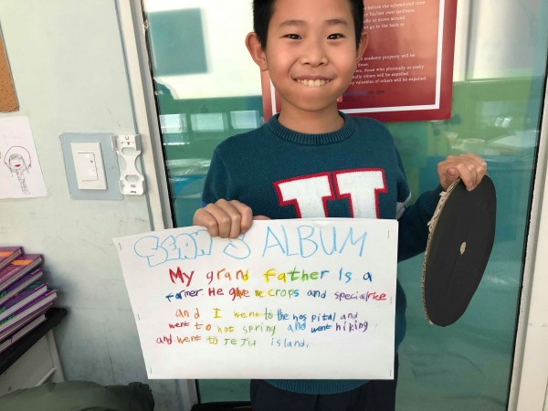 After reading "Grandma's Record", the students got to make their own record CD and also decorate their album cover. On the cover, they wrote about the memories they shared with their grandparents.