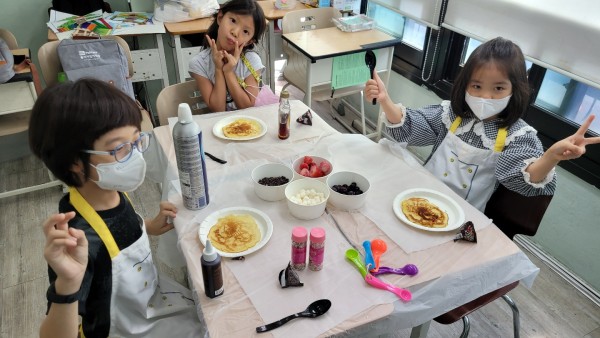 The next story project class was for "If you give a Pig a Pancake" and we learned all the ingredients needed and recipe to make a basic Pancake. However, I showed them that they could put more toppings than just Maple syrup. So we had blueberries, strawberries, chocolate chips, whip cream, sprinkles, and marshmallows. Of course Maple syrup but also chocolate syrup