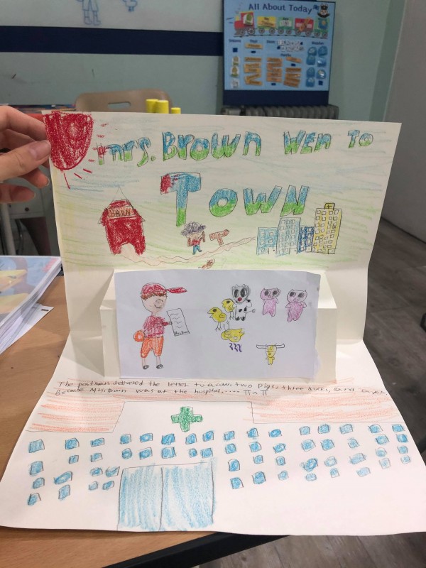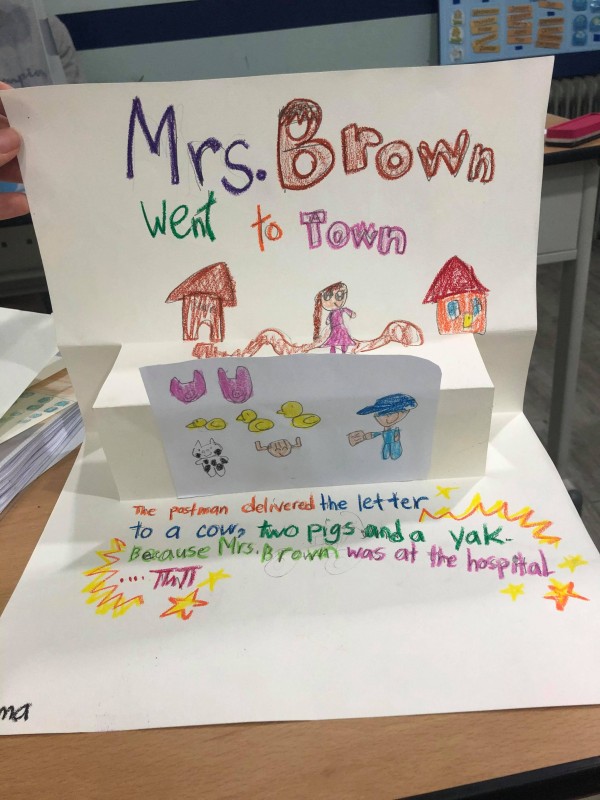 Today we got to make a pop up book related to "Mrs.Brown Went to Town"!