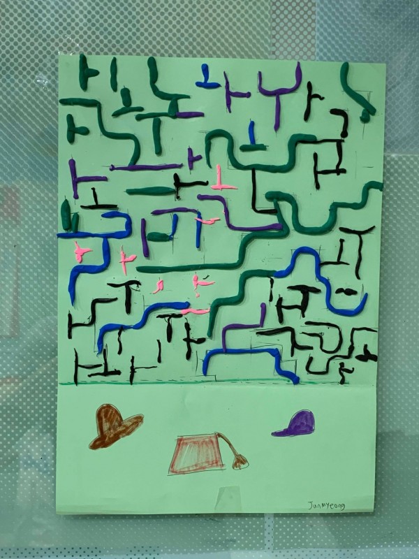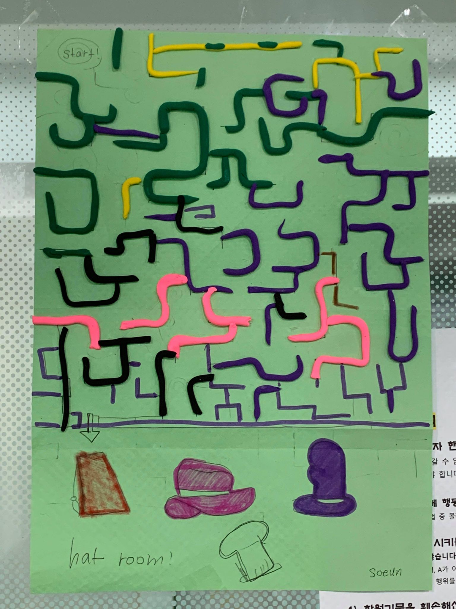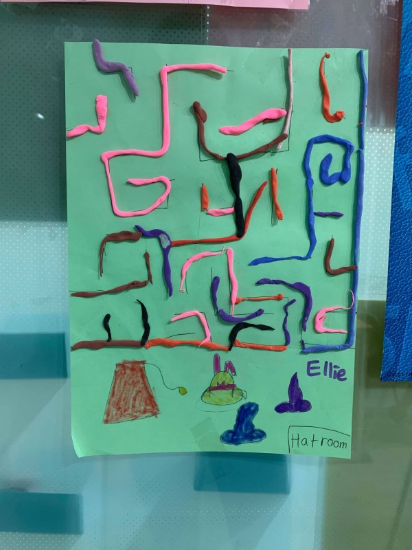 Students made lost and found mazes to the hat room.