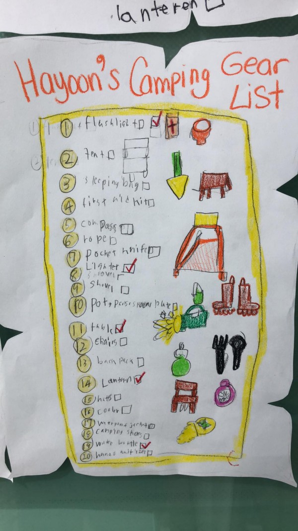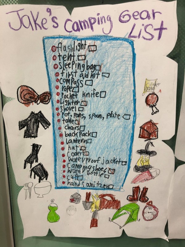Today the students got to come up with their own camping gear list!