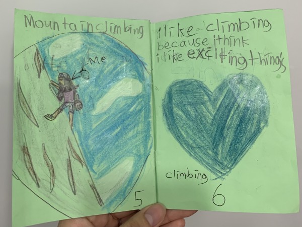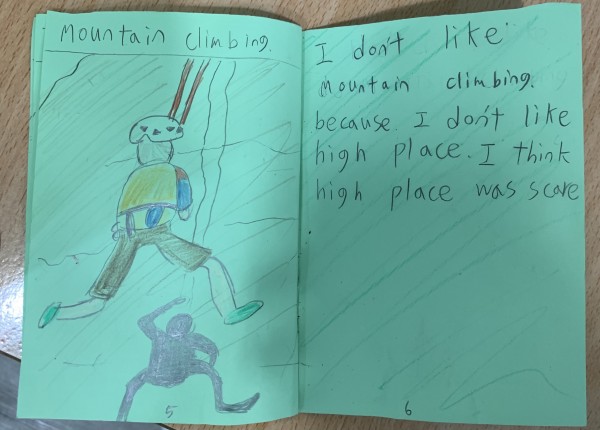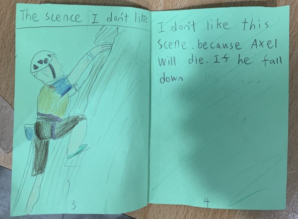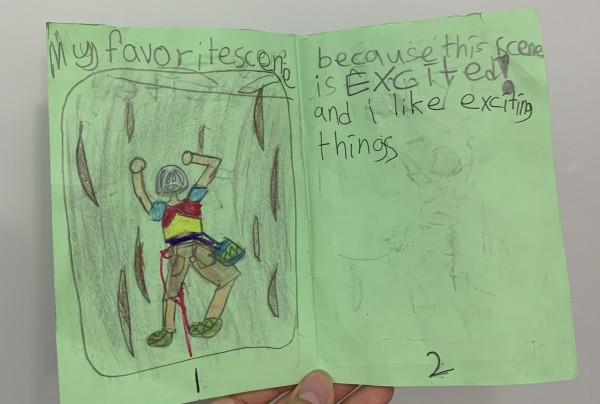 The students made a mini book and wrote about their favorite scenes, least favorite scenes, and whether they want to try mountain climbing.
