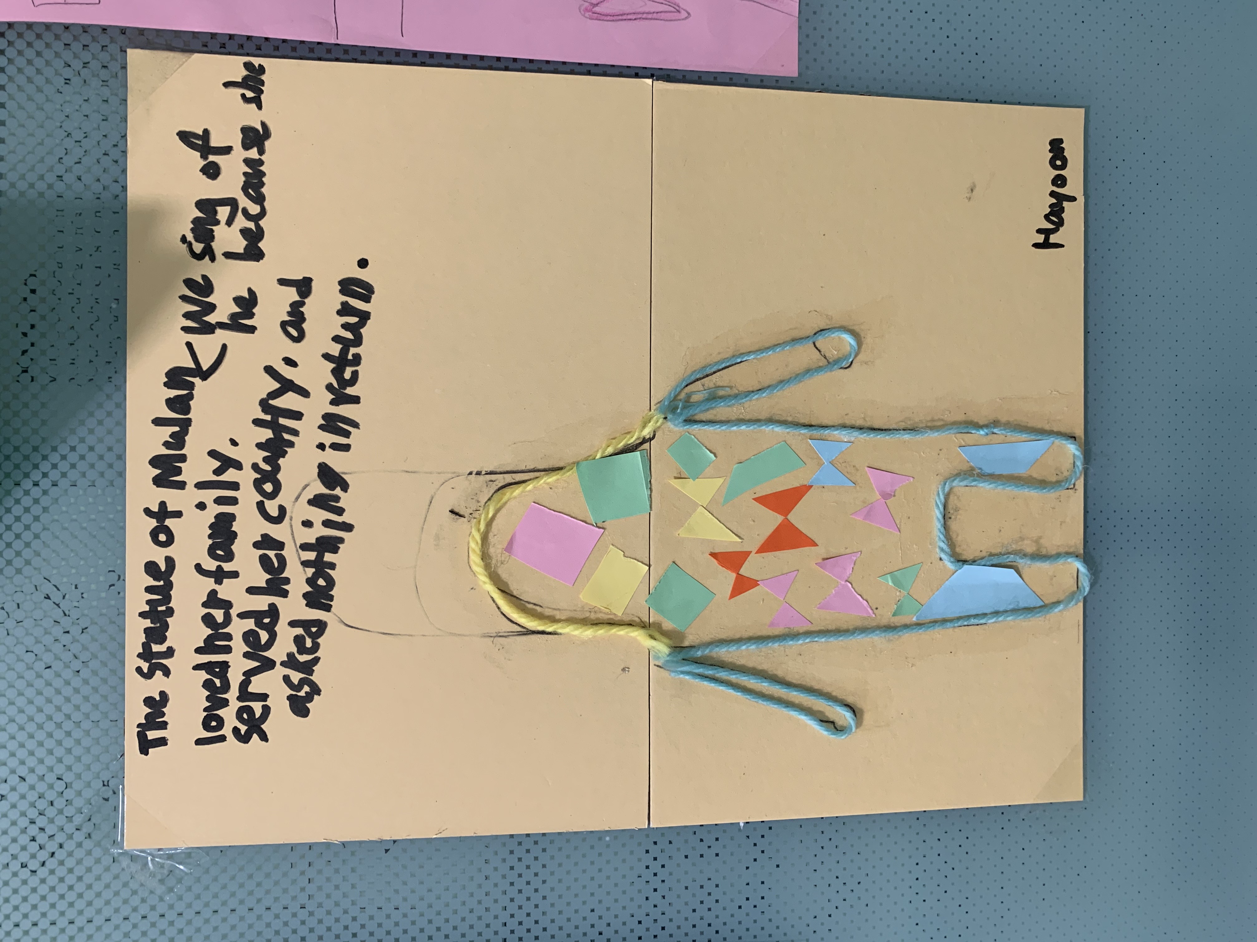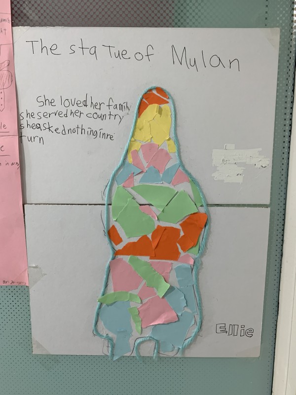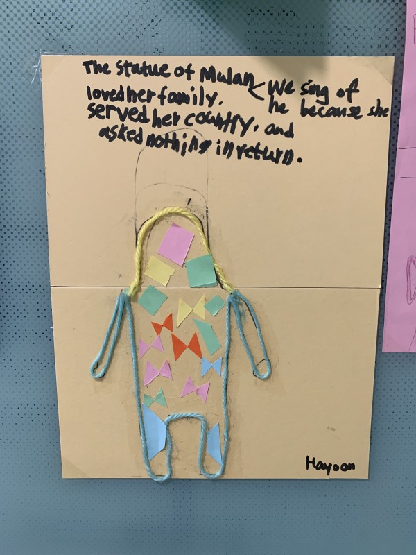 The students made statues of Mulan and wrote about why we sing of her.